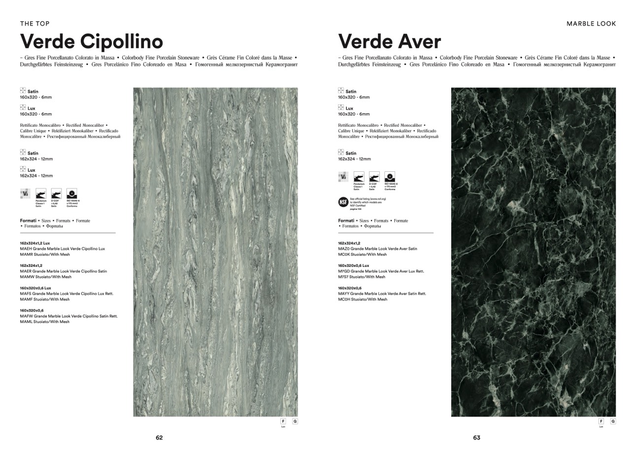 MAFW Grande Marble Look Verde Cipollino Satin Rett.