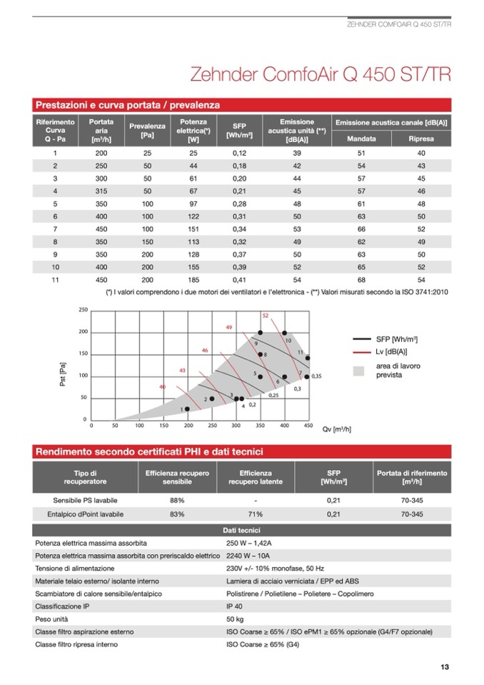 (*) I valori comprendono i due motori dei ventilatori e l’elettronica - (**) Valori misurati secondo la ISO 3741:2010