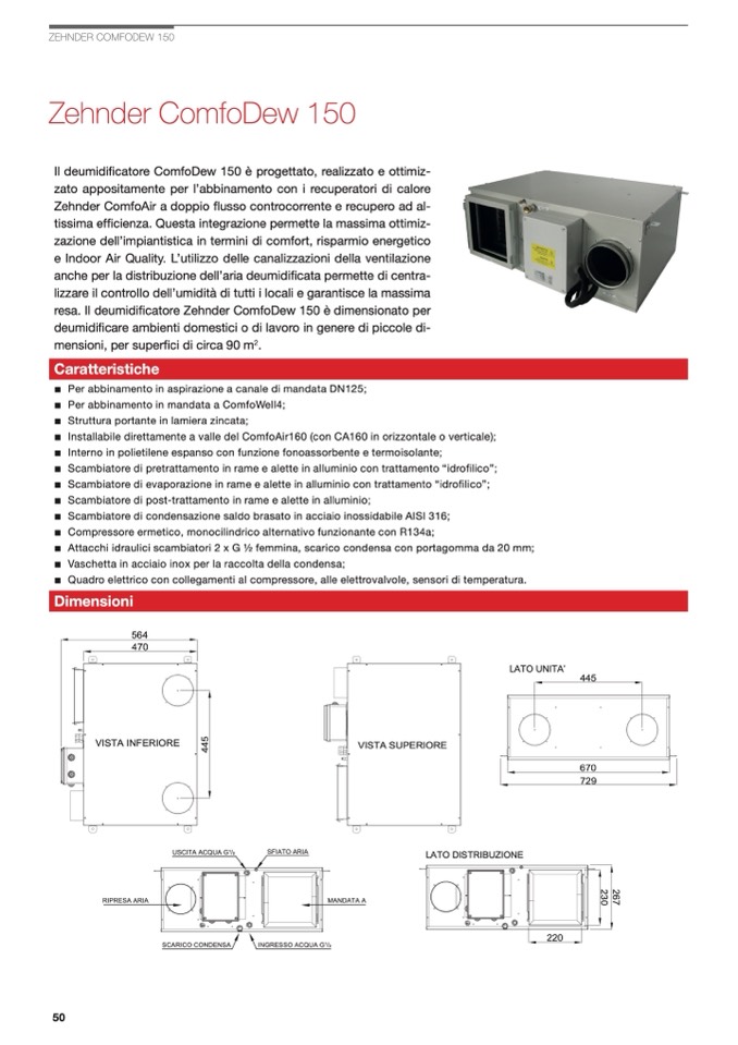 resa. Il deumidificatore Zehnder ComfoDew 150 è dimensionato per