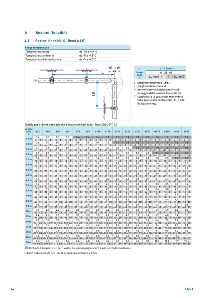 Tabella per L-Bend, contrazione ed espansione del tubo - Tubo COOL-FIT 4.0