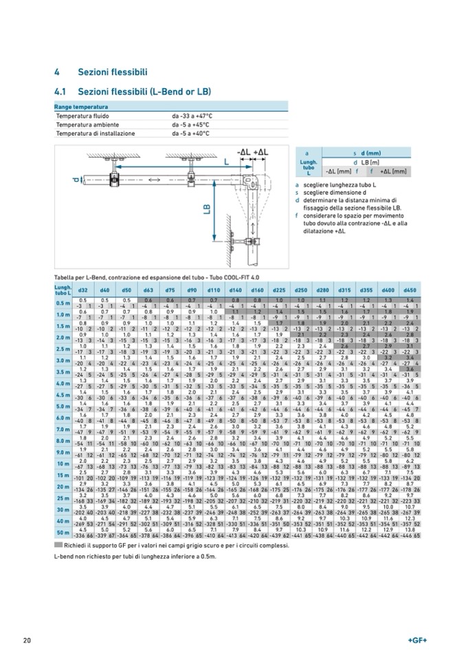 Tabella per L-Bend, contrazione ed espansione del tubo - Tubo COOL-FIT 4.0