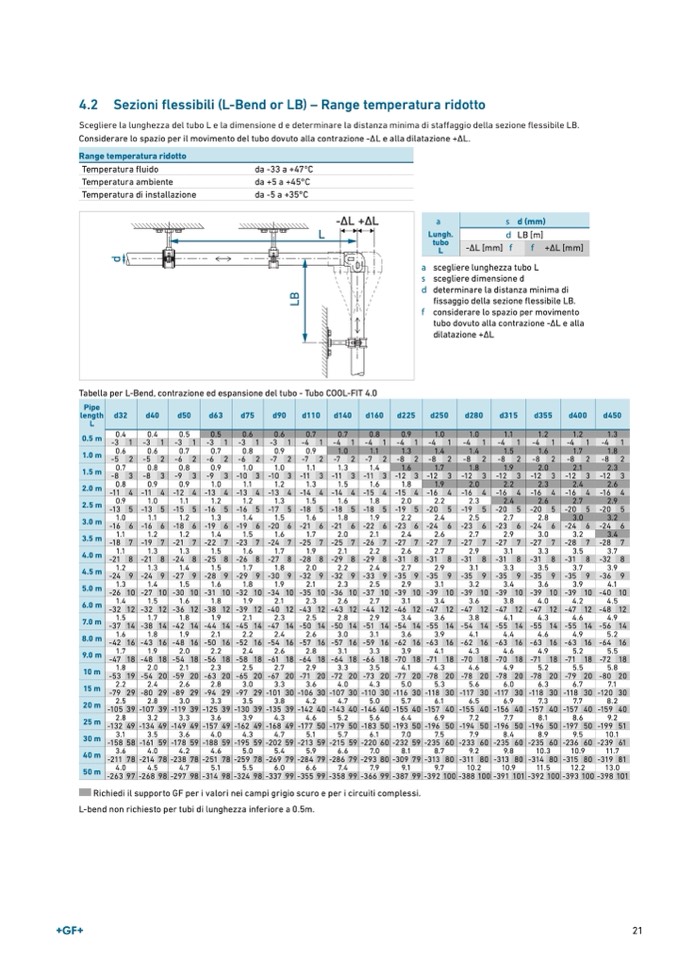 Tabella per L-Bend, contrazione ed espansione del tubo - Tubo COOL-FIT 4.0
