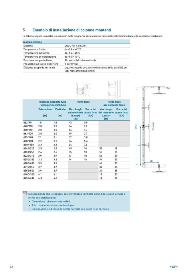 La tabella seguente mostra un esempio delle lunghezze delle colonne montanti realizzabili in base alle condizioni ipotizzate: