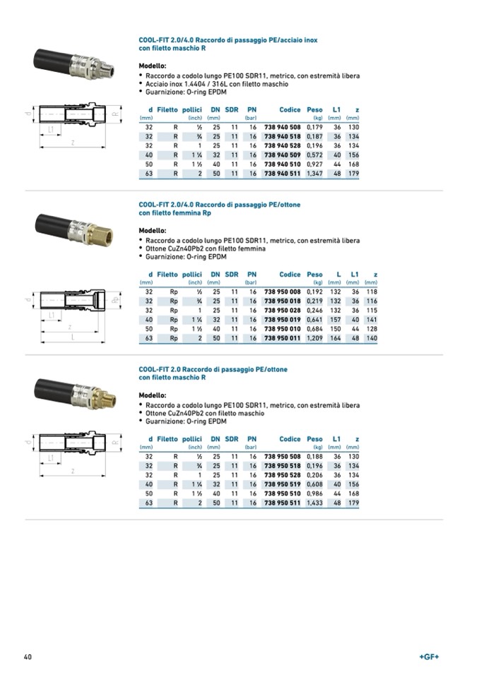 COOL-FIT 2.0/4.0 Raccordo di passaggio PE/acciaio inox