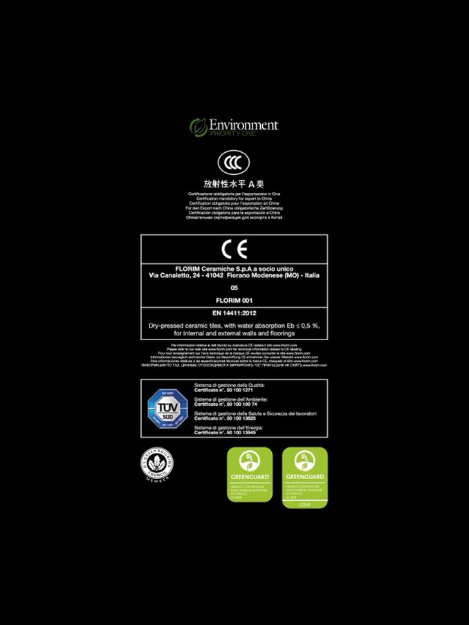 Para informaciones relativas a las especificaciones técnicas sobre la marca CE, chequear el sitio www.florim.com