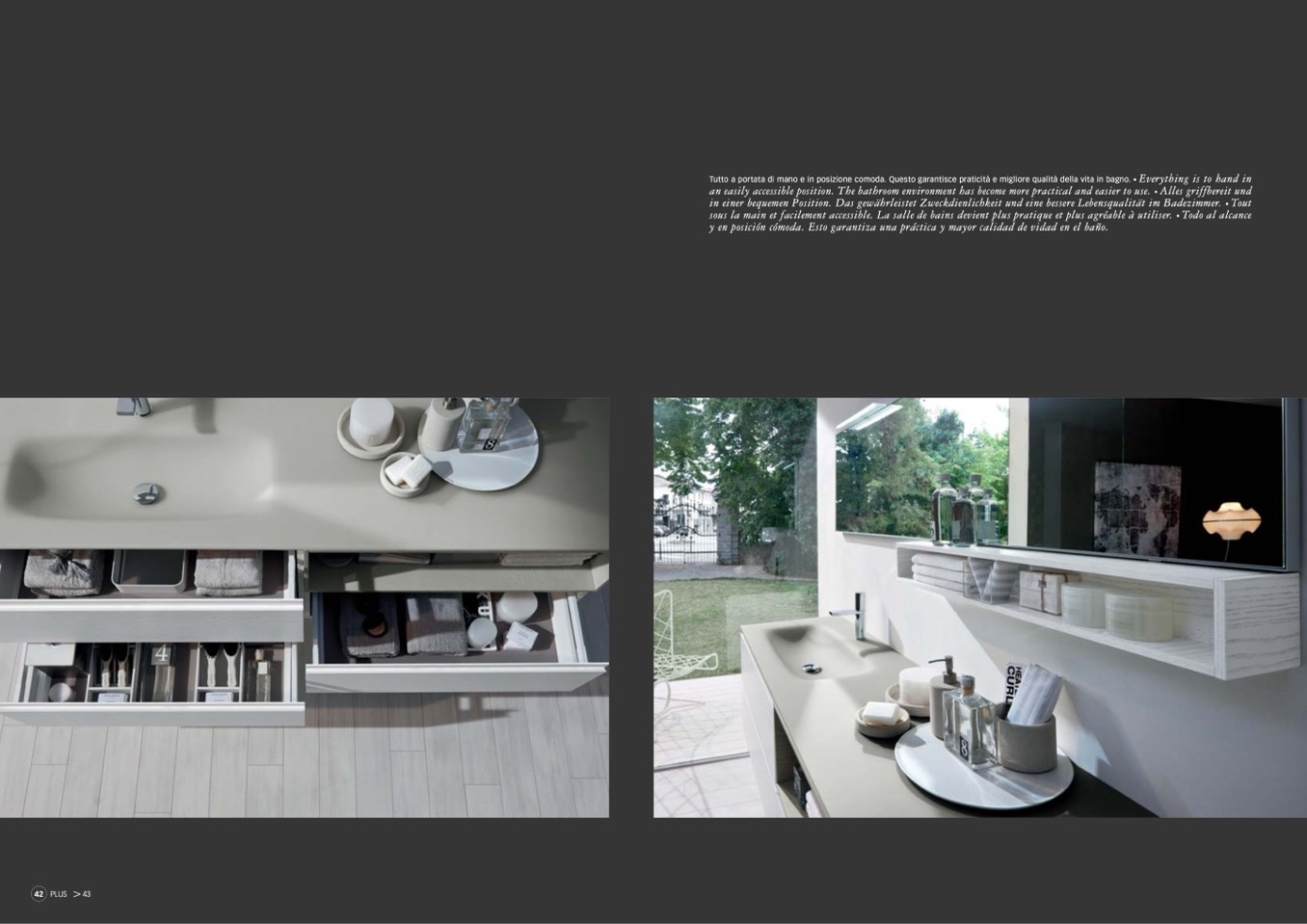 Tutto a portata di mano e in posizione comoda. Questo garantisce praticità e migliore qualità della vita in bagno. •