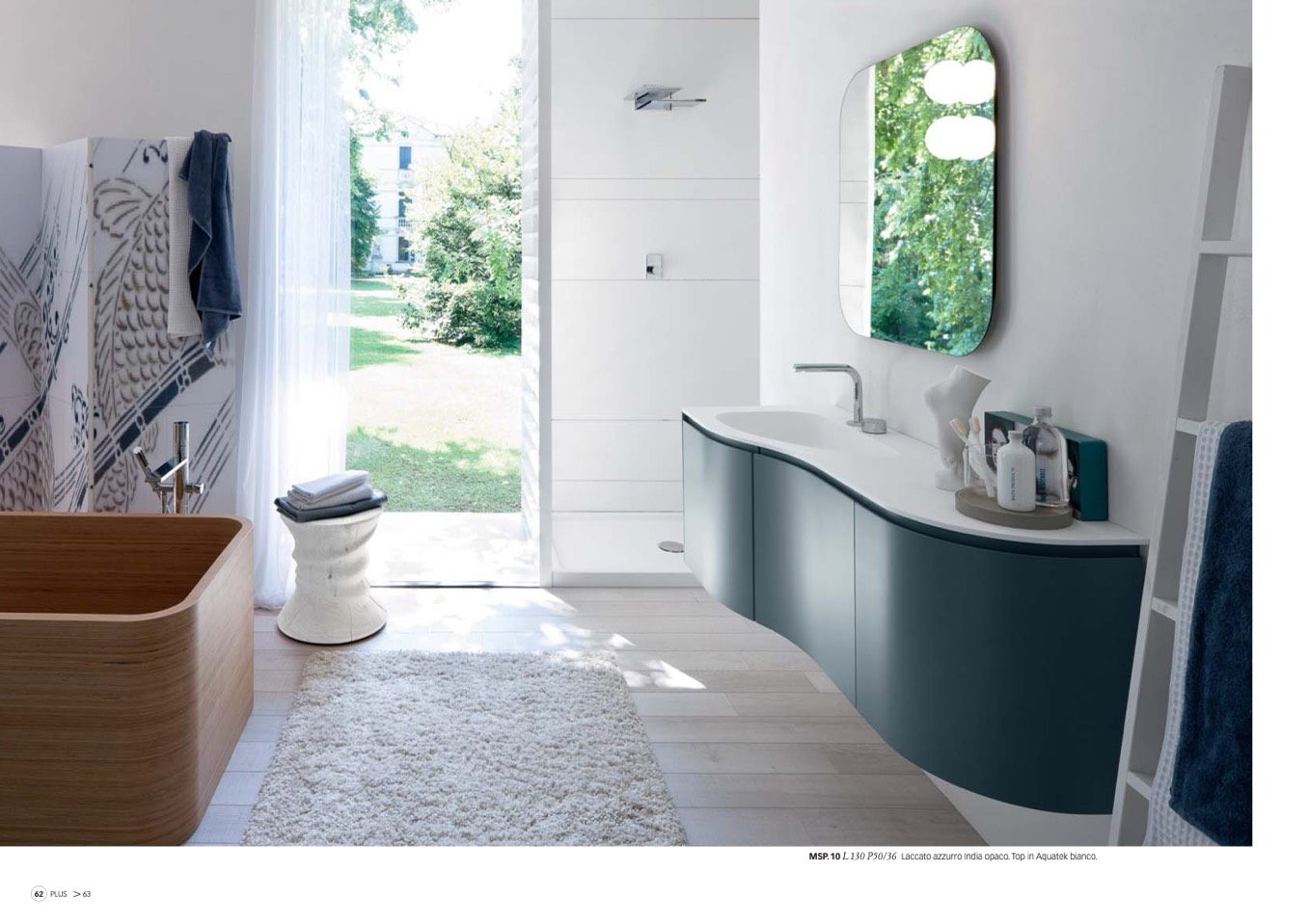 MSP.10 L 130 P50/36 Laccato azzurro India opaco. Top in Aquatek bianco.