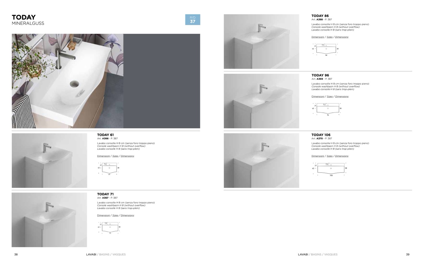 Lavabo consolle H 8 cm (senza foro troppo pieno)