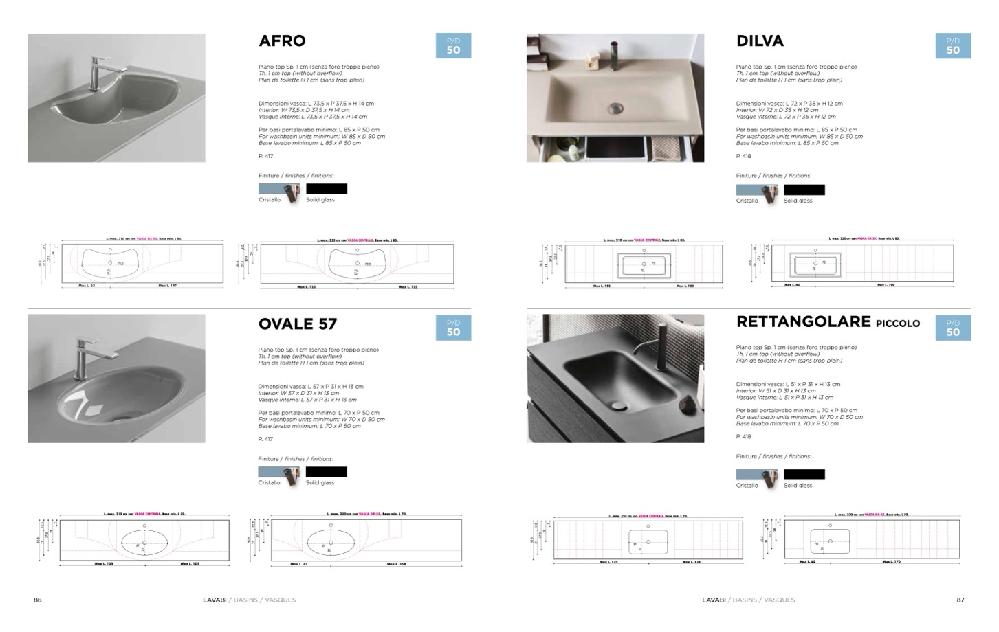 Per basi portalavabo minimo: L 70 x P 50 cm