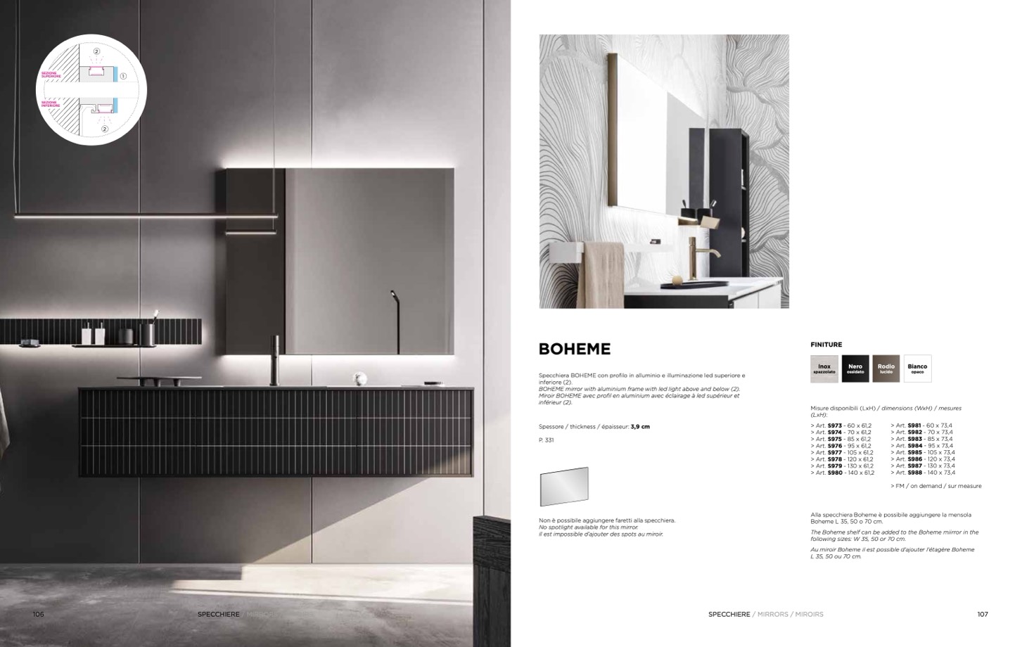 BOHEME mirror with aluminium frame with led light above and below (2).
