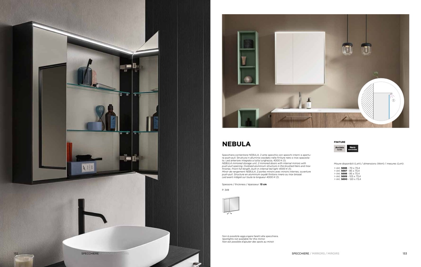 Specchiera contenitore NEBULA. 2 ante specchio con specchi interni e apertu-