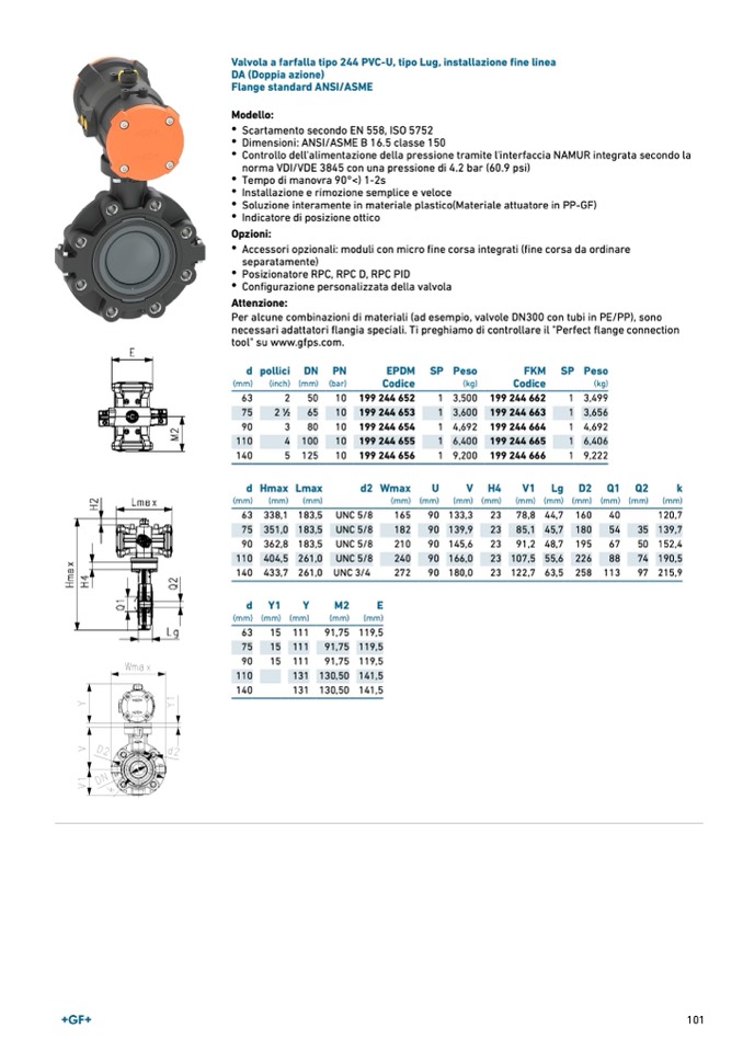 Valvola a farfalla tipo 244 PVC-U, tipo Lug, installazione fine linea