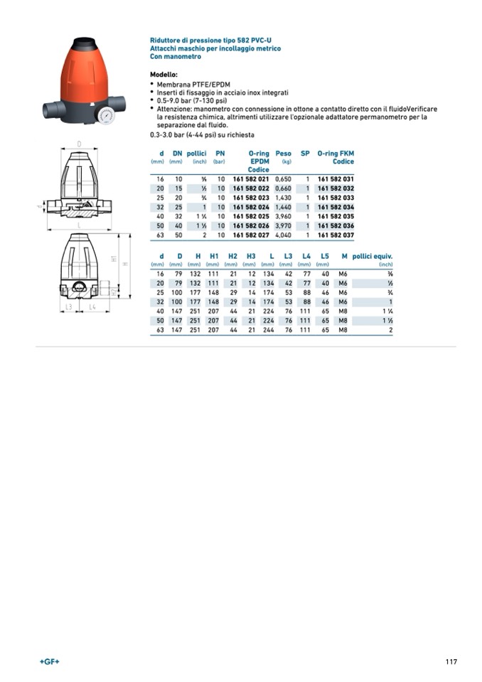 Riduttore di pressione tipo 582 PVC-U
