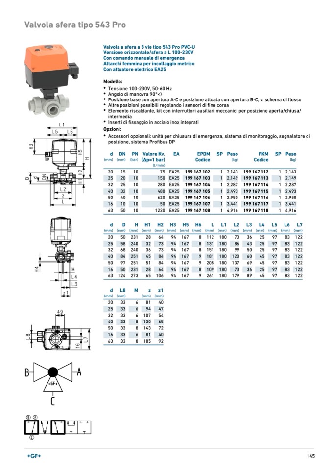 Valvola a sfera a 3 vie tipo 543 Pro PVC-U