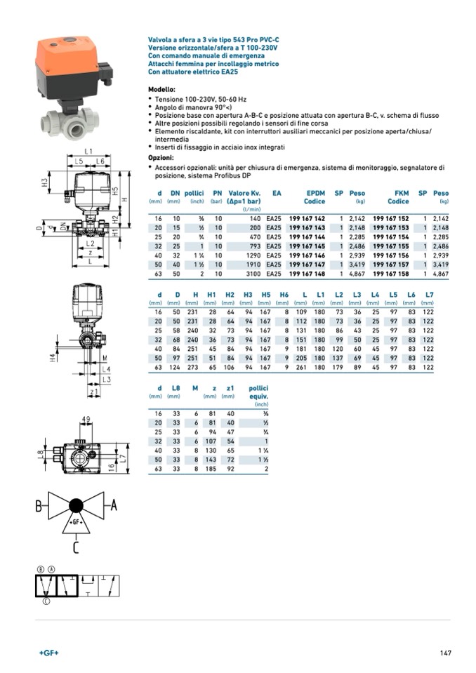 Valvola a sfera a 3 vie tipo 543 Pro PVC-C