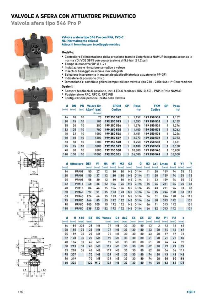 Valvola a sfera tipo 546 Pro con PPA, PVC-C