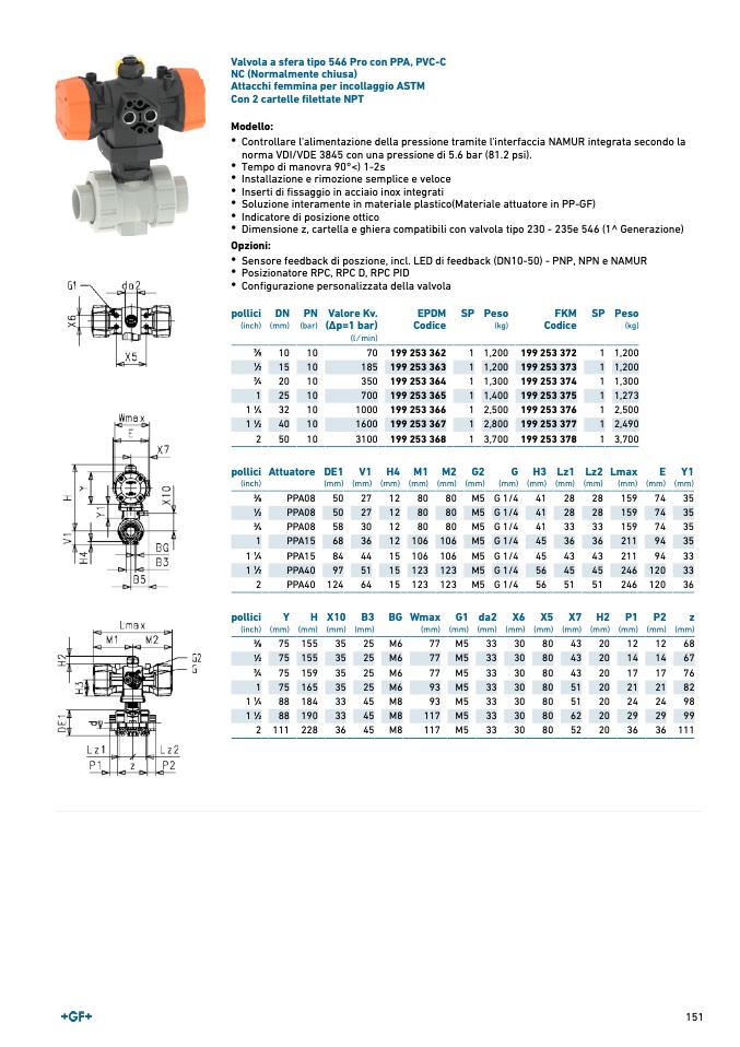 Valvola a sfera tipo 546 Pro con PPA, PVC-C