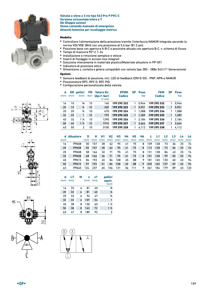 Valvola a sfera a 3 vie tipo 543 Pro P PVC-C