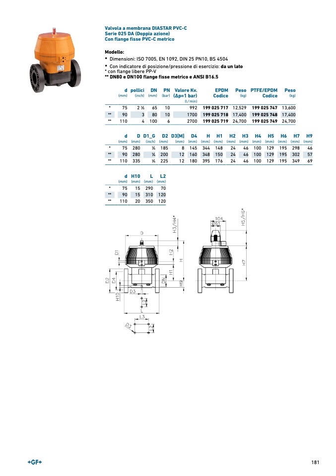 Dimensioni: ISO 7005, EN 1092, DIN 25 PN10, BS 4504