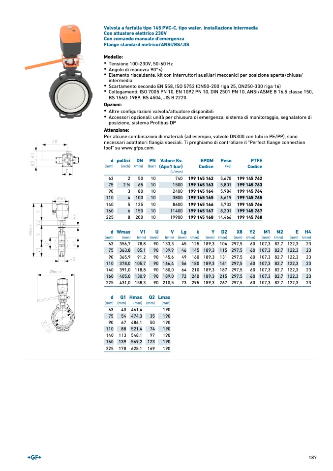 Valvola a farfalla tipo 145 PVC-C, tipo wafer, installazione intermedia