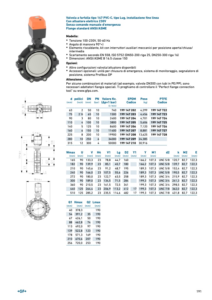 Valvola a farfalla tipo 147 PVC-C, tipo Lug, installazione fine linea