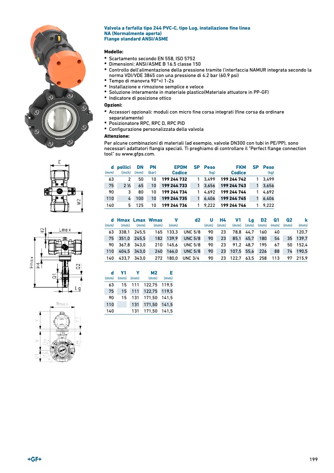 Valvola a farfalla tipo 244 PVC-C, tipo Lug, installazione fine linea