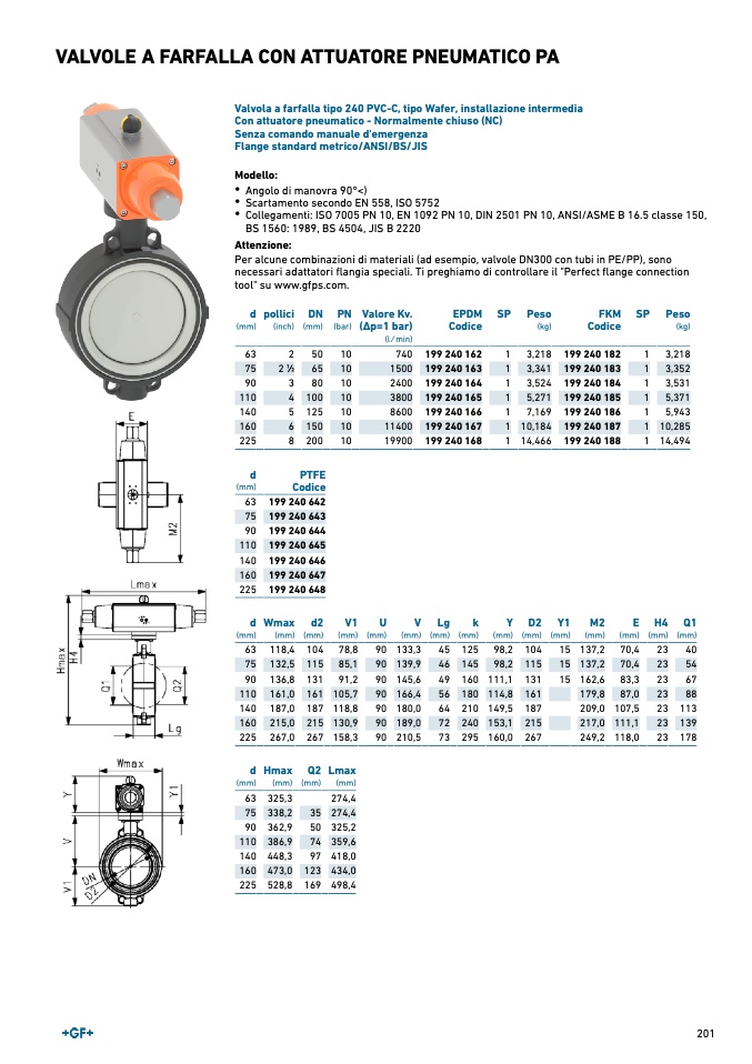 Valvola a farfalla tipo 240 PVC-C, tipo Wafer, installazione intermedia