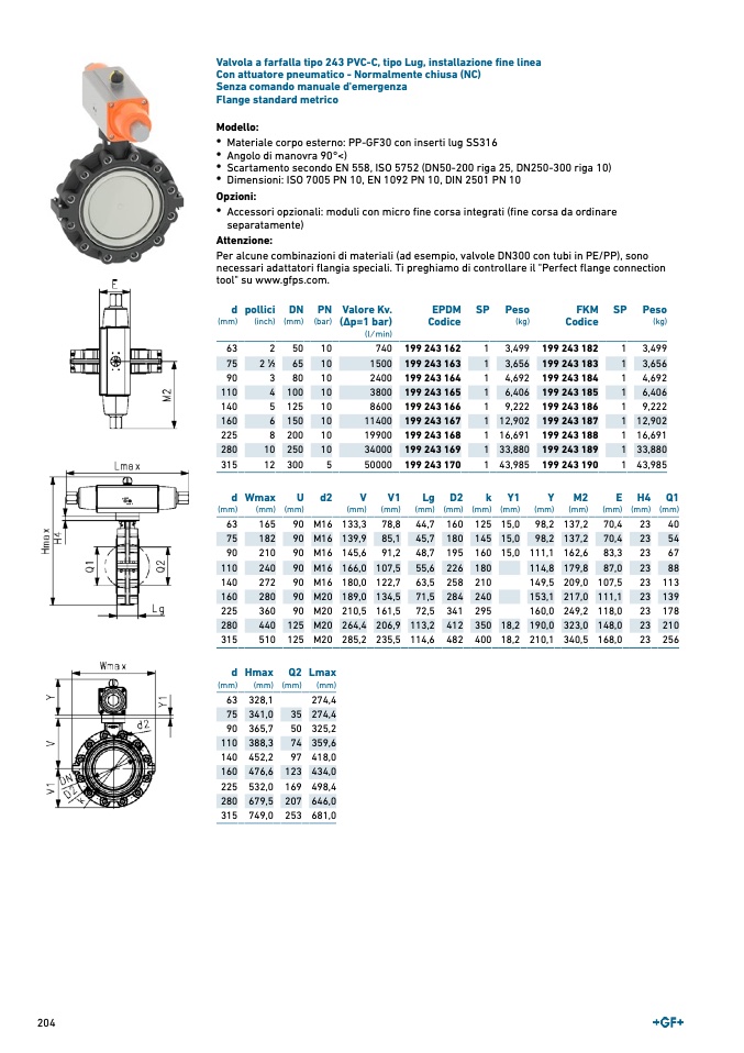 Valvola a farfalla tipo 243 PVC-C, tipo Lug, installazione fine linea
