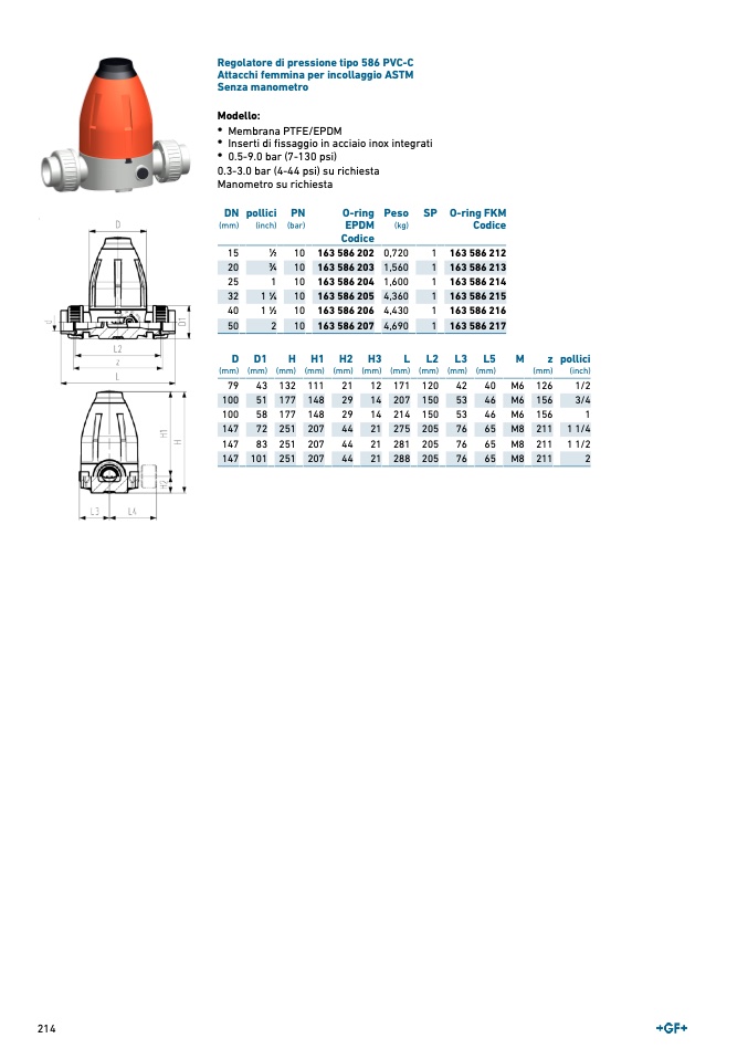 Regolatore di pressione tipo 586 PVC-C