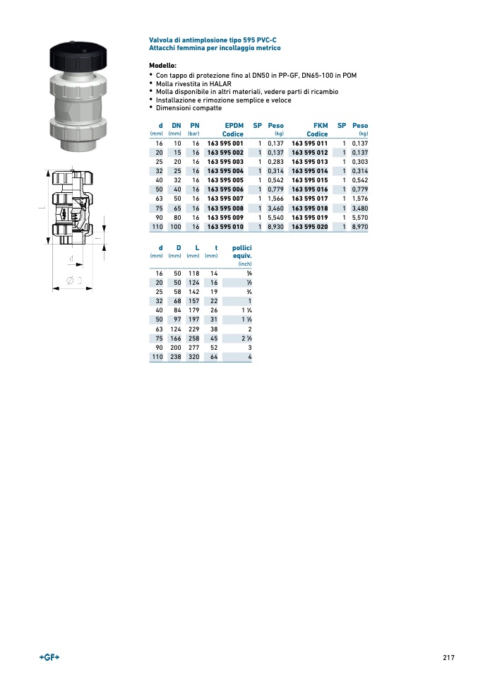 Valvola di antimplosione tipo 595 PVC-C