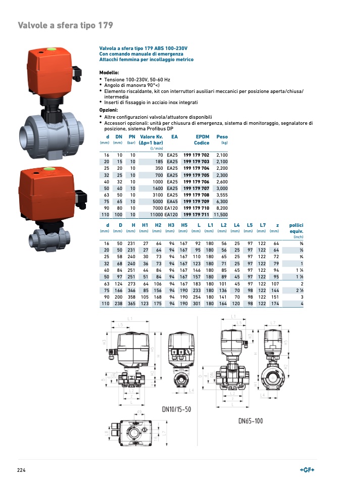 Valvola a sfera tipo 179 ABS 100-230V