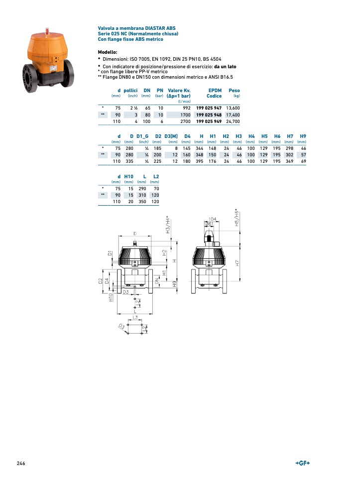 Dimensioni: ISO 7005, EN 1092, DIN 25 PN10, BS 4504