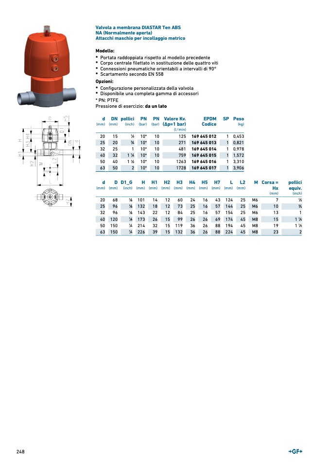 Valvola a membrana DIASTAR Ten ABS