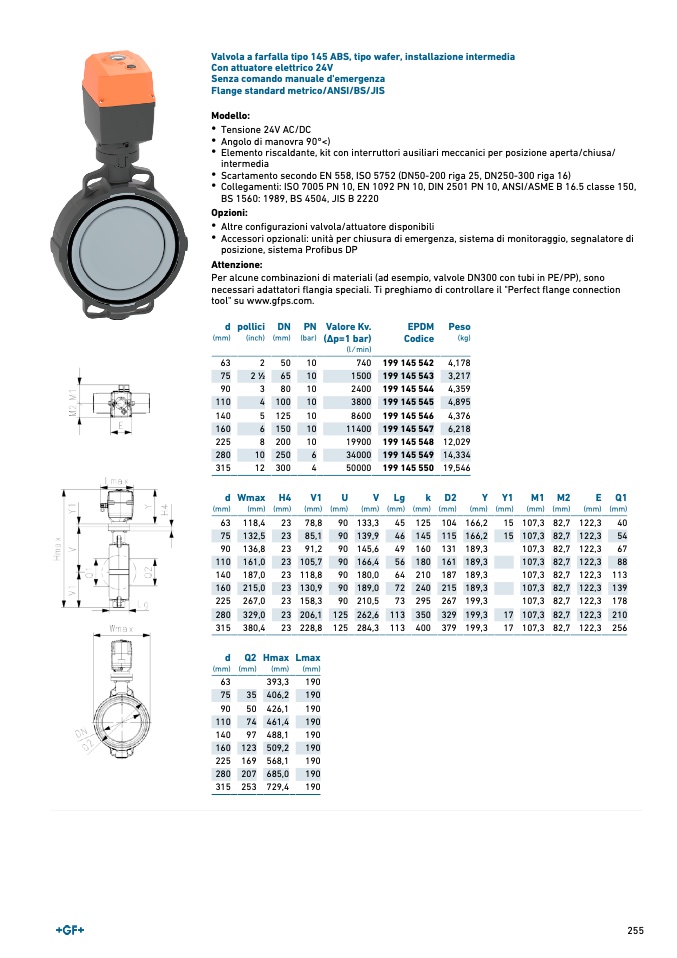 Valvola a farfalla tipo 145 ABS, tipo wafer, installazione intermedia