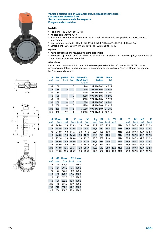 Valvola a farfalla tipo 146 ABS, tipo Lug, installazione fine linea
