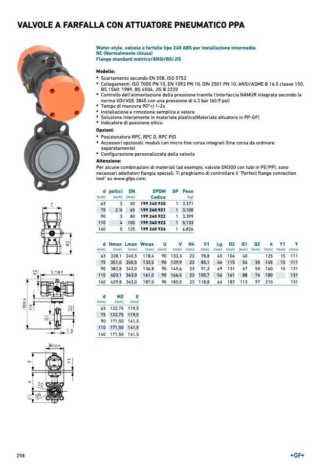 norma VDI/VDE 3845 con una pressione di 4.2 bar (60.9 psi)