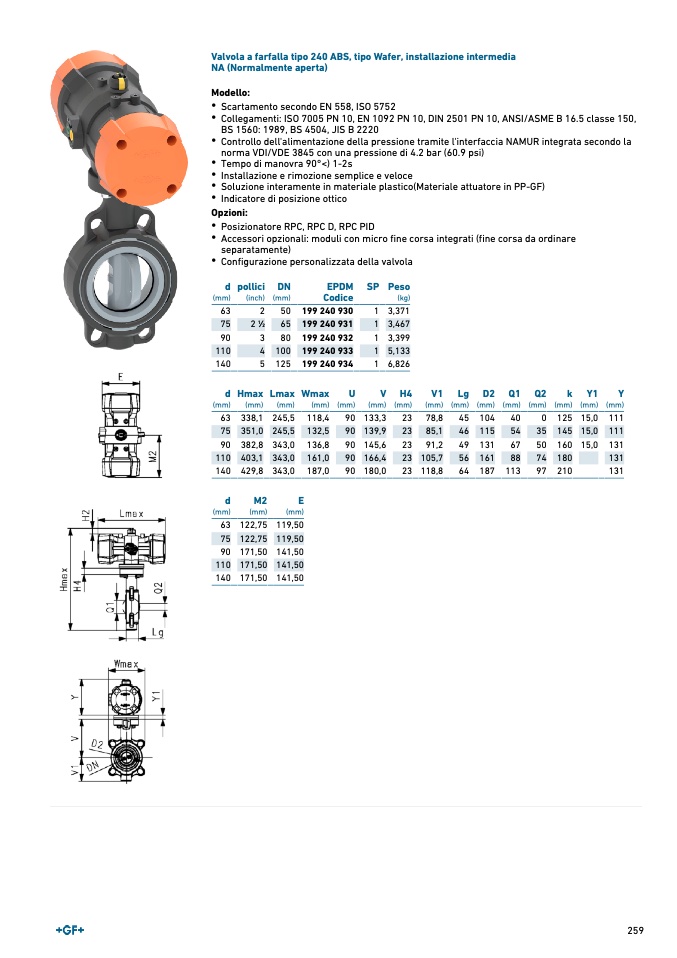 Valvola a farfalla tipo 240 ABS, tipo Wafer, installazione intermedia