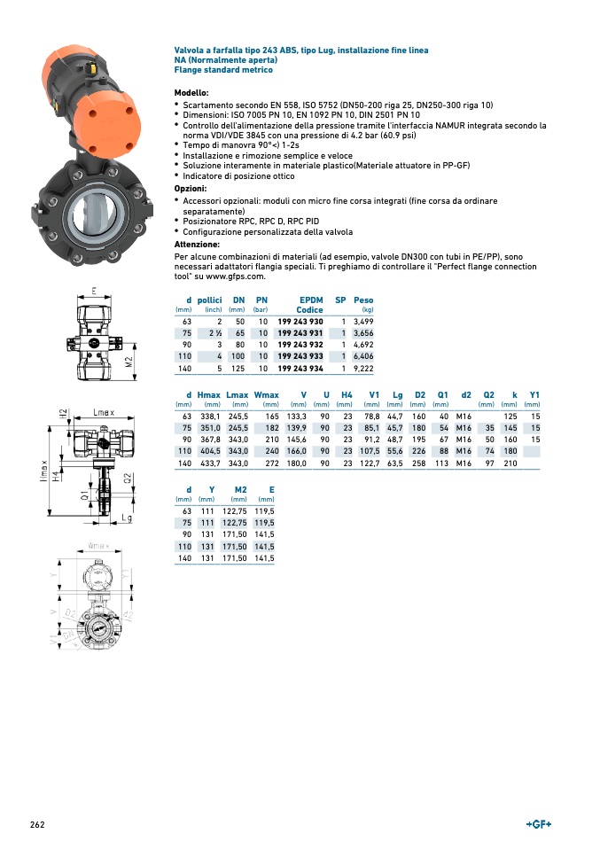 Valvola a farfalla tipo 243 ABS, tipo Lug, installazione fine linea