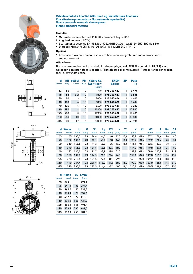 Valvola a farfalla tipo 243 ABS, tipo Lug, installazione fine linea