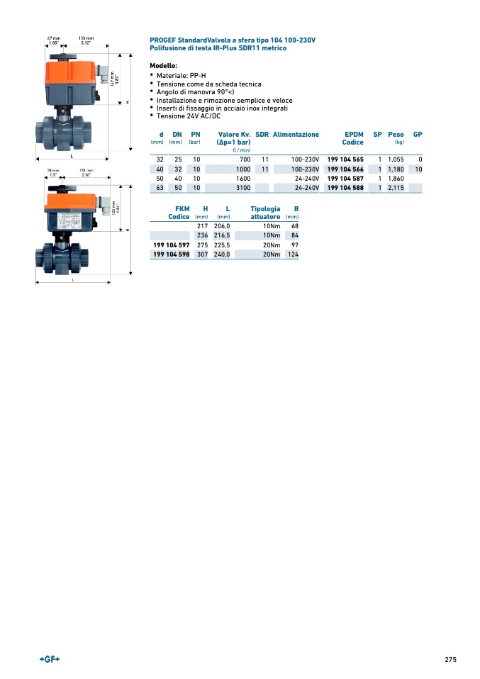 PROGEF StandardValvola a sfera tipo 104 100-230V