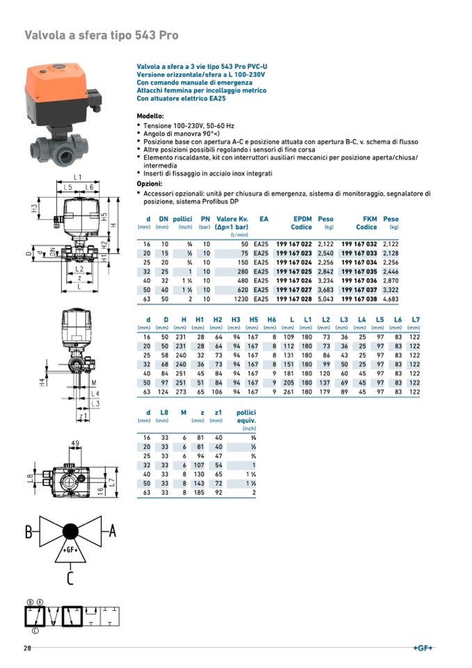 Valvola a sfera a 3 vie tipo 543 Pro PVC-U