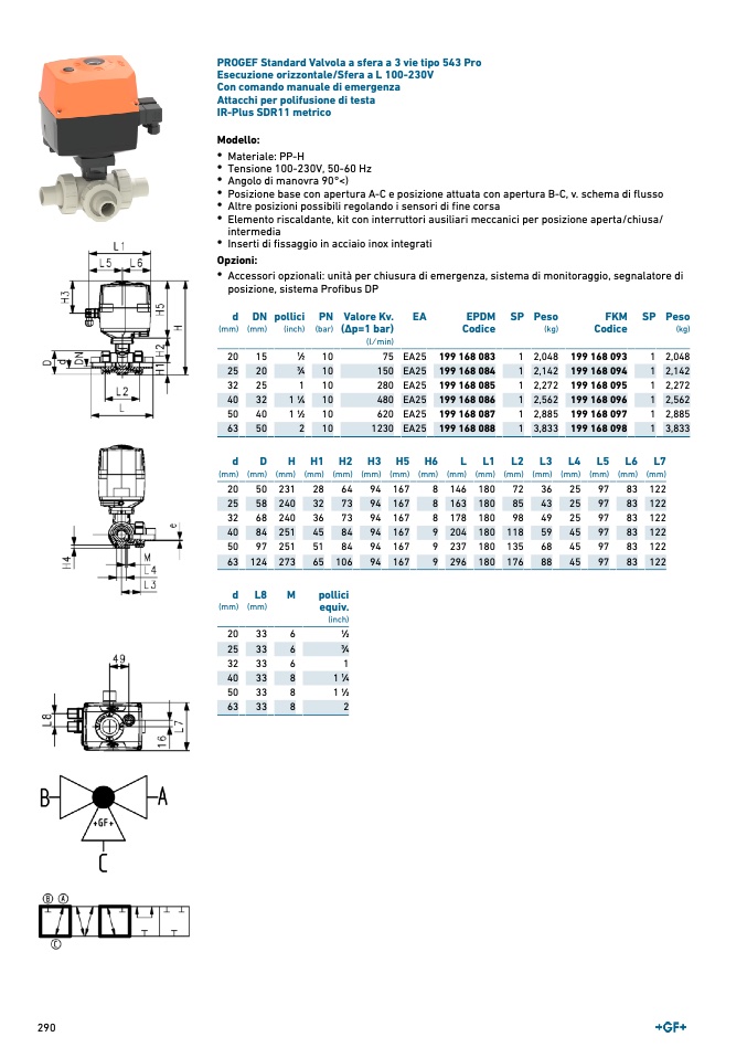 PROGEF Standard Valvola a sfera a 3 vie tipo 543 Pro