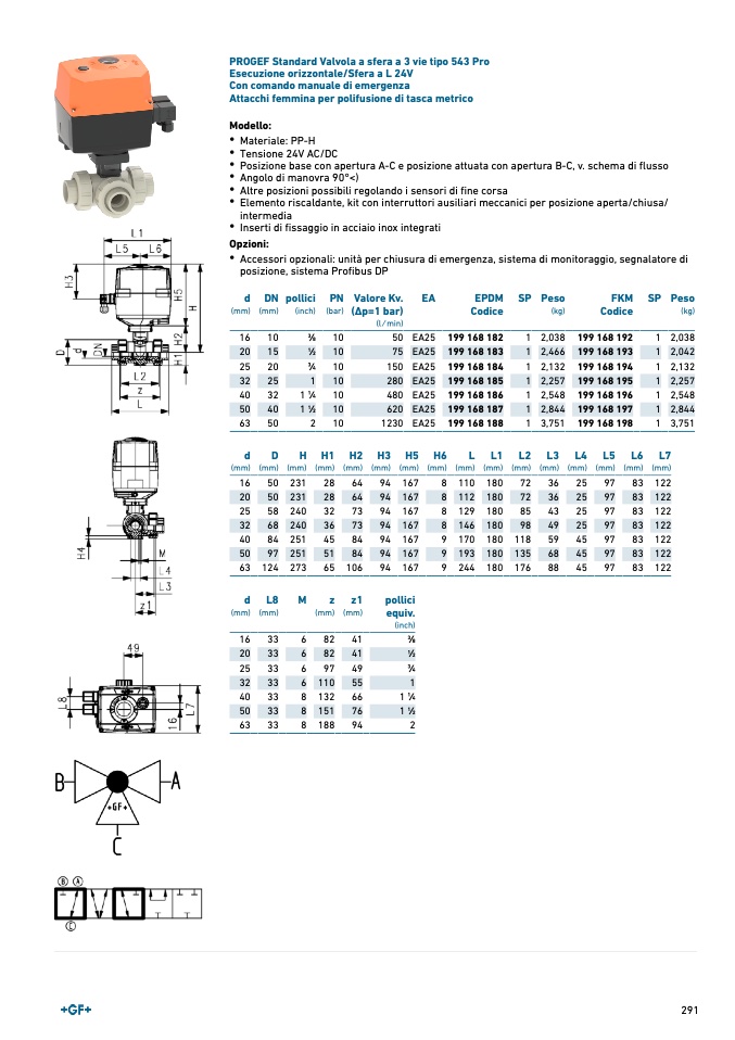 PROGEF Standard Valvola a sfera a 3 vie tipo 543 Pro