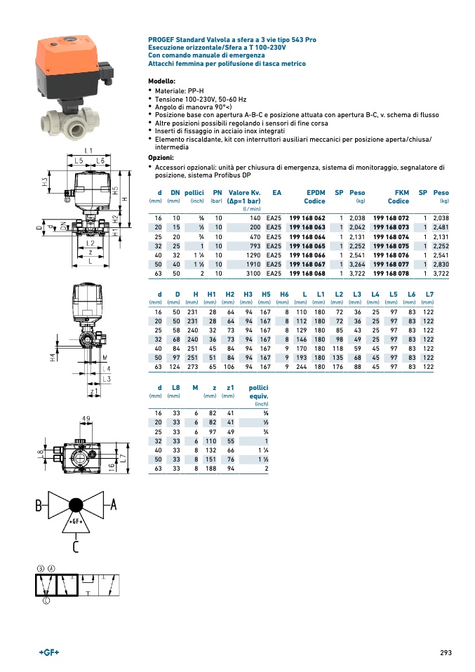PROGEF Standard Valvola a sfera a 3 vie tipo 543 Pro