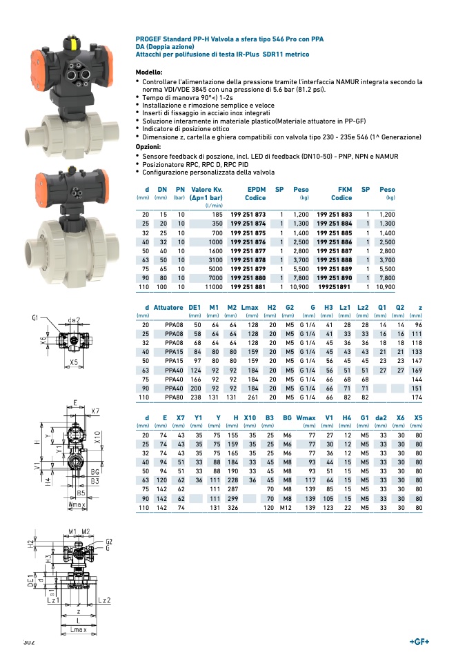 PROGEF Standard PP-H Valvola a sfera tipo 546 Pro con PPA