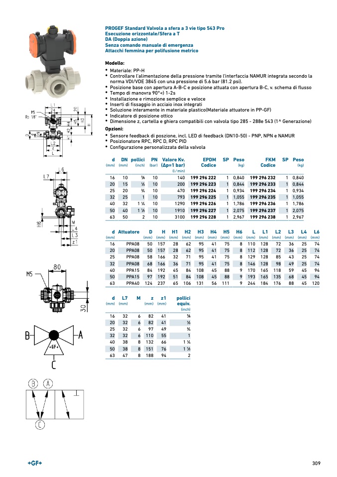 PROGEF Standard Valvola a sfera a 3 vie tipo 543 Pro