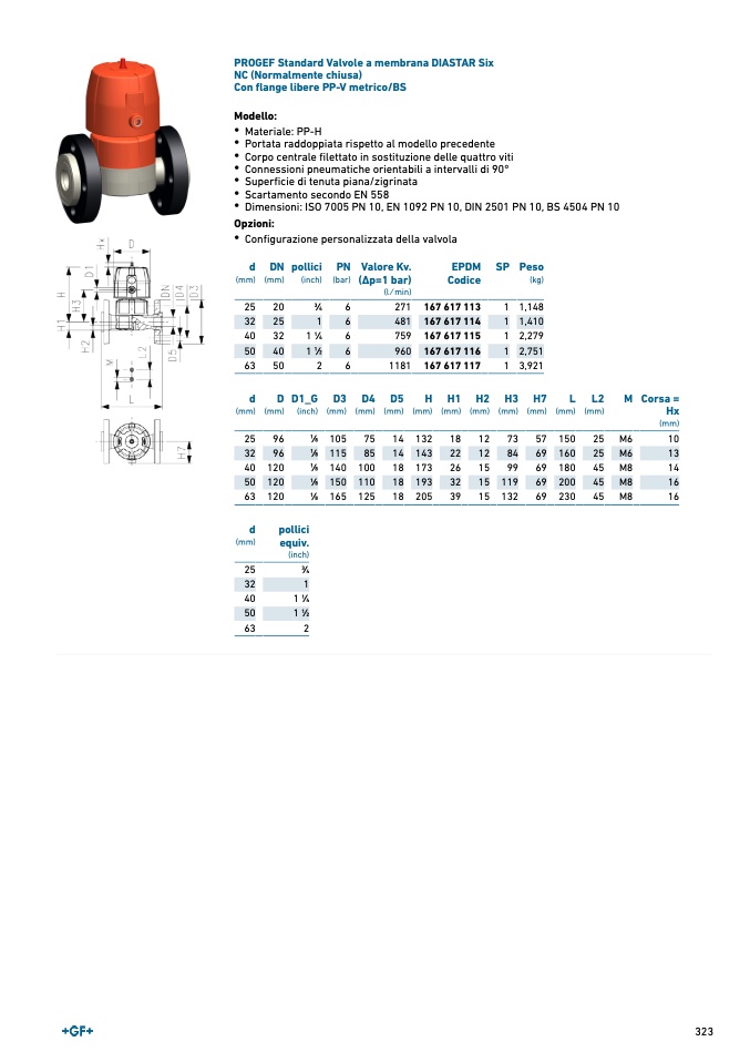 PROGEF Standard Valvole a membrana DIASTAR Six