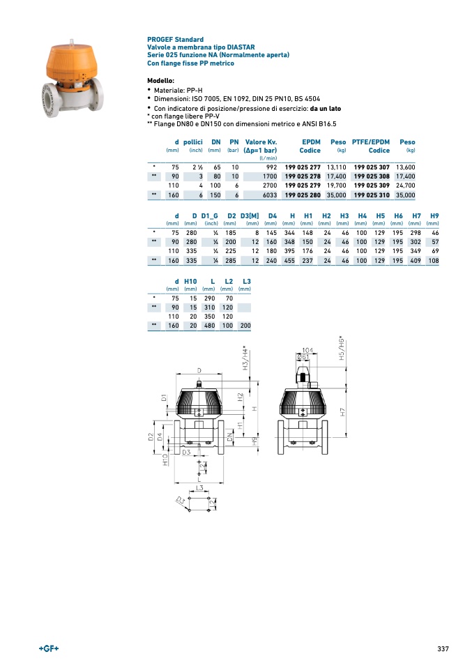 Dimensioni: ISO 7005, EN 1092, DIN 25 PN10, BS 4504