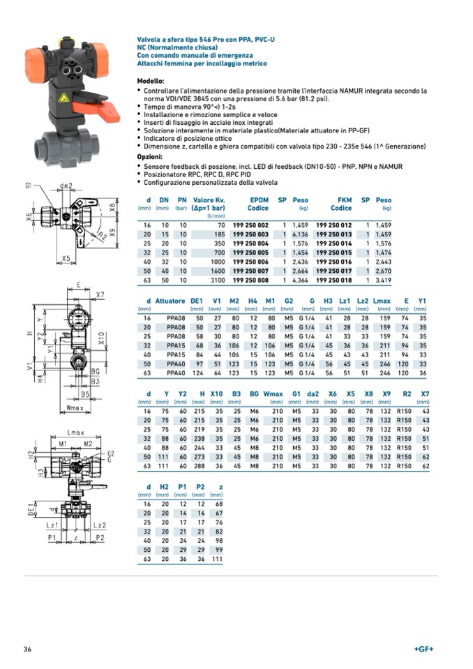 Valvola a sfera tipo 546 Pro con PPA, PVC-U