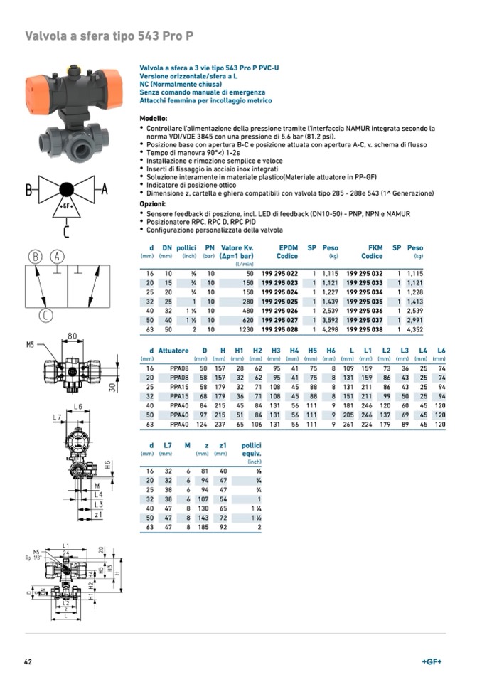 Valvola a sfera a 3 vie tipo 543 Pro P PVC-U